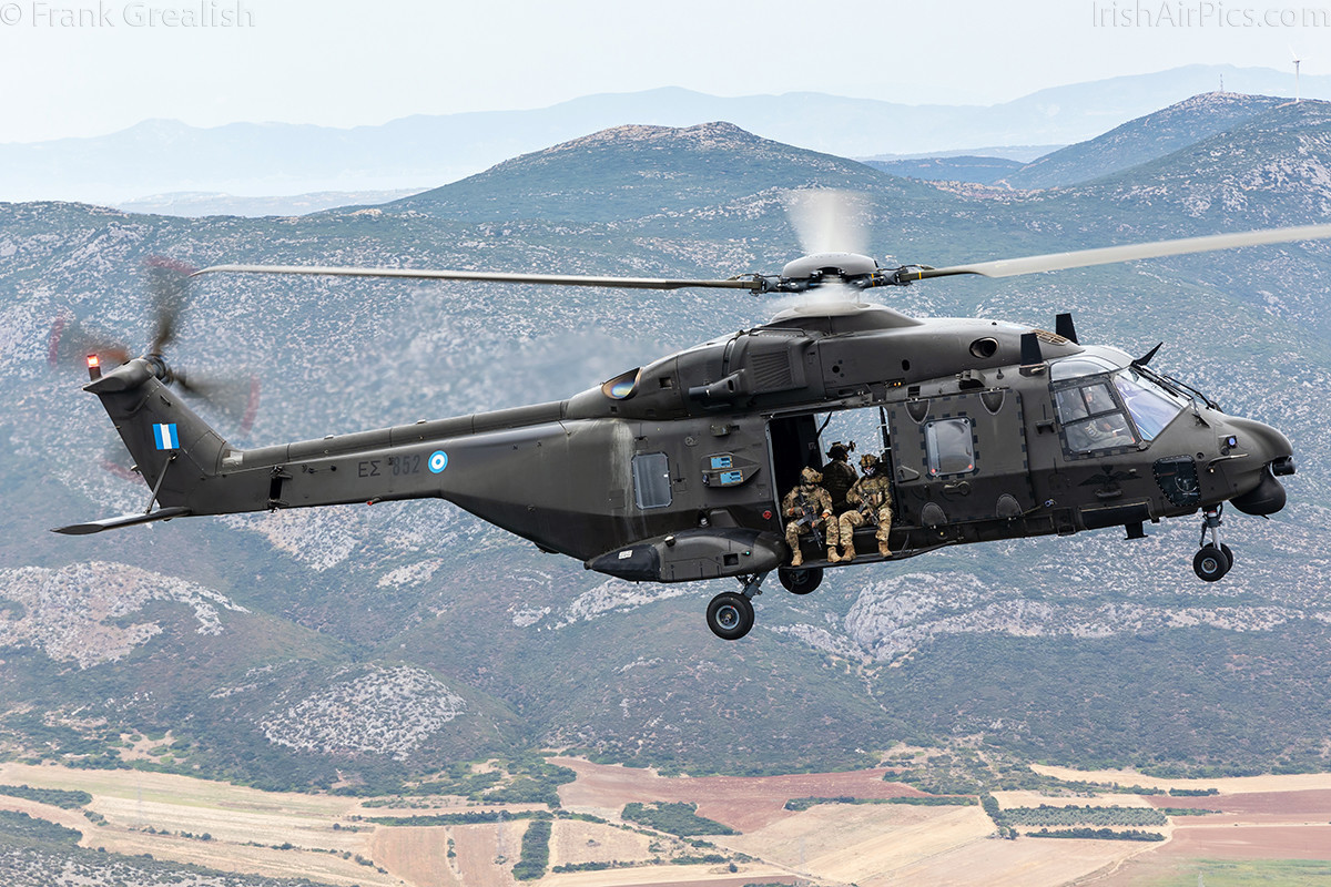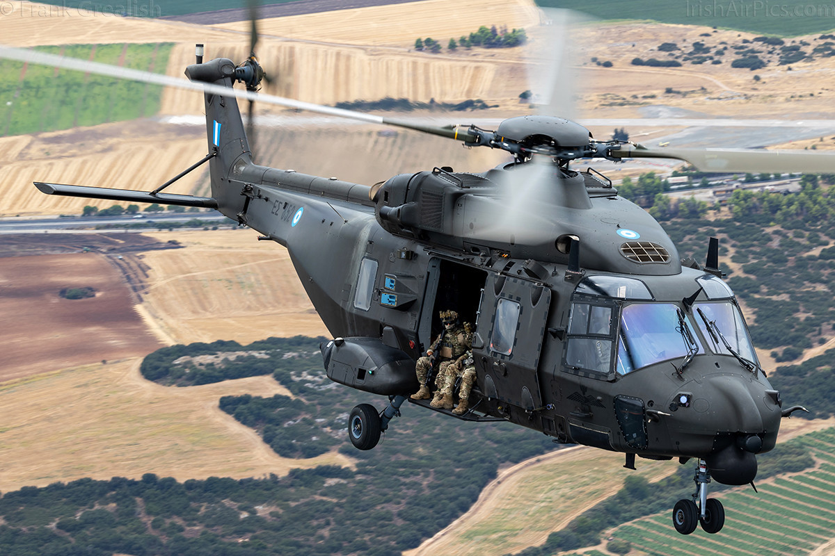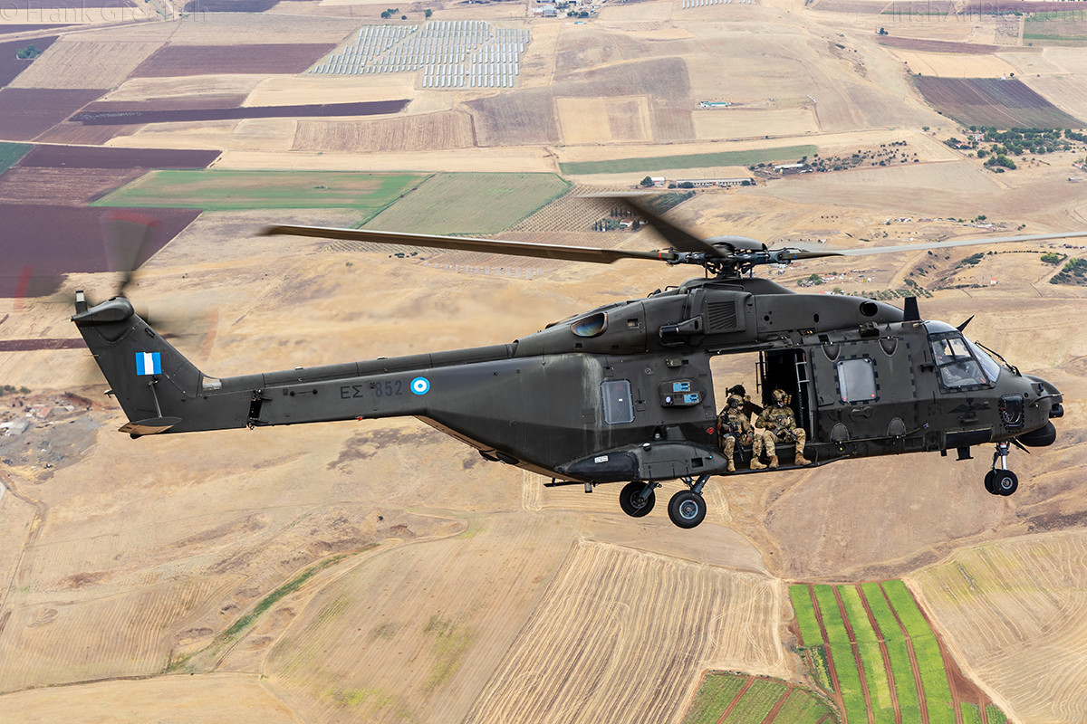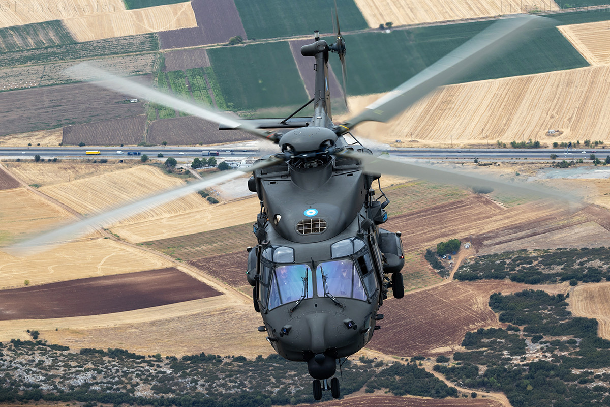 Once the Kiowa pulled away, a Hellenic Naval Aviation Command Sikorsky S-70B Aegean Hawk joined up. We completed a few circuits with the Aegean Hawk before it pulled away and the final helicopter joined up, an NHIndustries NH-90-SOH.