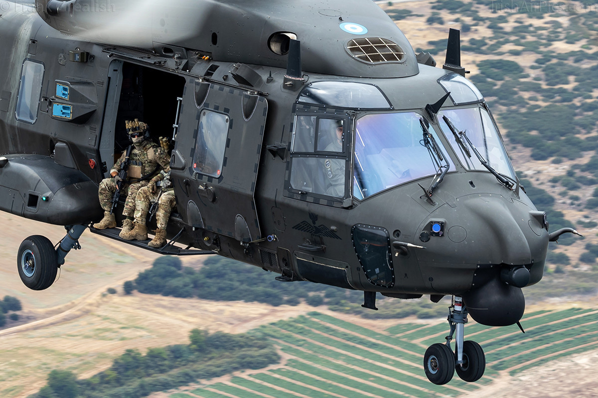 The NH-90-SOH is a dedicated special operations variant, and the helicopter that came alongside lived up to it's special operations designation by having two special forces operatives sitting in the open doorway on each side of the helicopter.