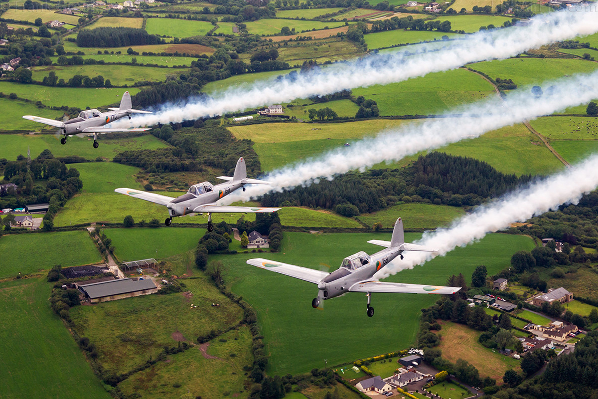 Everyone who helped arrange all the photoshoots, including Aer Lingus, the Foynes & Bray Air Displays, the Irish Historic Flight, Patrouille Tranchant, the Strikemaster Display Team and the Norwegian Air Force Historical Squadron. Thanks must also to the pilots & crew, including Flippie, Noel, Uli in the DC-3, Kenneth in the MiG-15, Mark & Ollie in the Strikemasters, Hugues and the team in the Fougas, Declan and the team in the Chipmunks, Shane in the A321, and of course Gerry, Seb, and Billy who flew the various photoships.