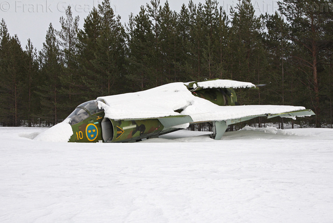 Other opportunities such as visits to hangars, maintenance facilities, base museum and the flightline for some night flying presented themselves. We even had the opportunity to visit the two derelict Viggens that were in approximately 1 metre of snow, Louise our escort had arranged for the air base snow blowers to clear a path for us to the aircraft.