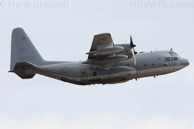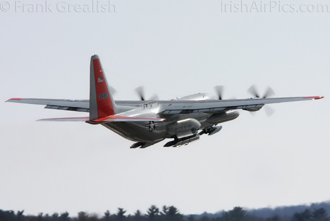 While waiting for the F-15's to take off I noticed an aircraft on approach trailing a lot of smoke, having seen similar smoke clouds before I knew it was a C-130, when the aircraft got closer I realised that it was a ski equipped LC-130 from the New York Air National Guard, an aircraft I had never seen before on static never mind in the air. Nice one!