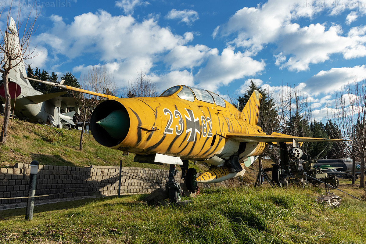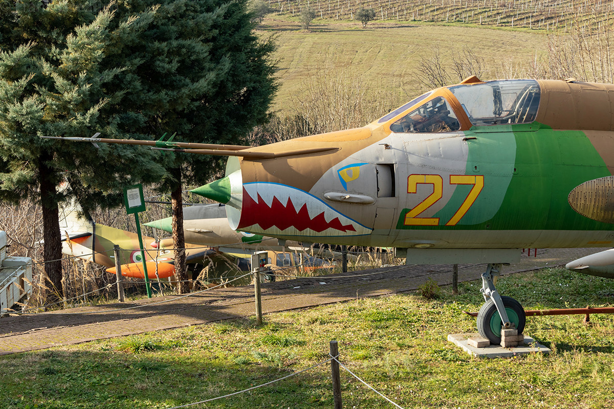 The aircraft on display are quite varied, including such types as the Fiat G.91, Gloster Javelin, Grumman S-2 Tracker, Ilyushin Il-28 Beagle, LTV A-7 Corsair, Mikoyan Gurevich MiG-21 Fishbed, Mil Mi-2 Hoplite, North American F-86 Sabre and the Piaggio P.166.